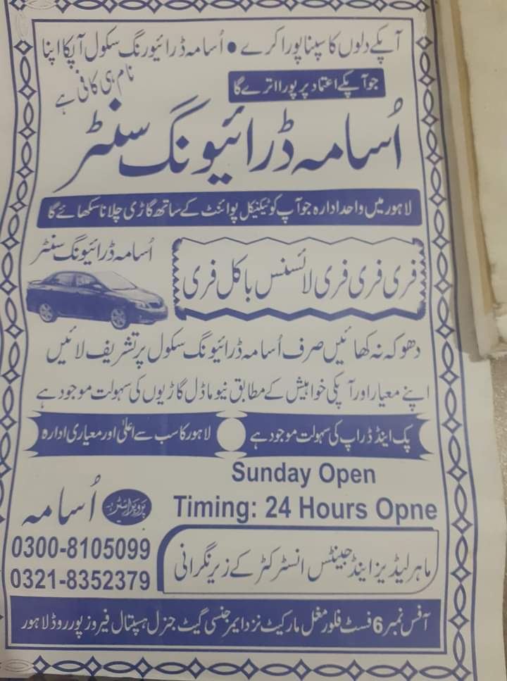 Usama Driving School was established in June 1998. The main idea was to set a plate form for the students. Who want to learn driving according to rules and system. Here they should be coached in the manners like other advance countries.